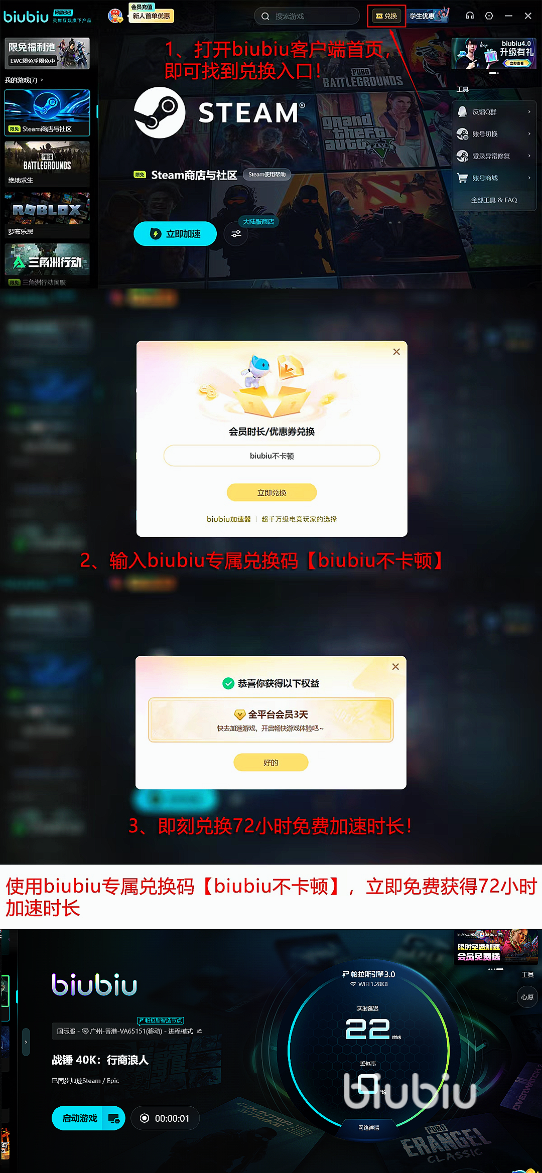 实测数据显示,使用biubiu加速器后,国际服平均延迟下降约42%,丢包率趋近于0%,大幅改善组队协同体验。用户口碑层面,大量《战锤40K:行商浪人》玩家反馈加速后副本开荒节奏更连贯,Boss战技能释放响应更精准。新用户完成注册即可获赠24小时全游戏免费加速权益;输入专属兑换码【biubiu不卡顿】还可叠加3天时长,总计享96小时无限制加速服务。该福利对新老用户均开放,无需额外订阅或绑定付费账户。