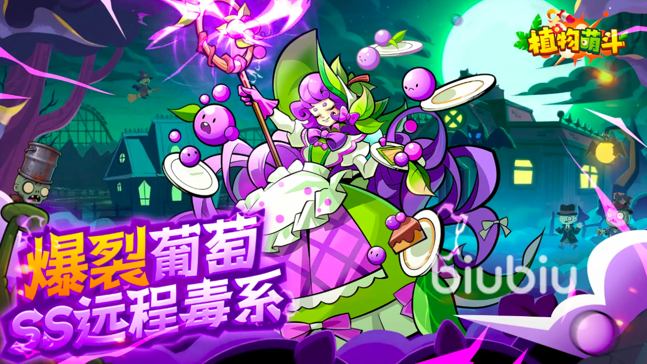 【持续消耗型毒系体系】:爆裂葡萄(SS级)协同魔法水晶兰(S级)。爆裂葡萄为远程毒系特化角色,技能机制支持远距离持续挂毒与区域污染,配合魔法水晶兰的魔力增幅,可触发特殊效果“杂交魔法毒气弹”。若暂未获取魔法水晶兰,可用初始角色豌豆小子替代,其稳定远程输出在前期至中期过渡阶段表现可靠,保障阵容下限。