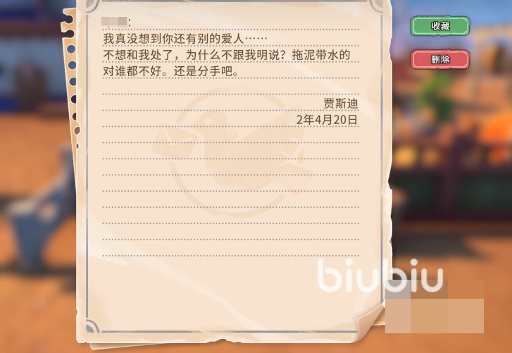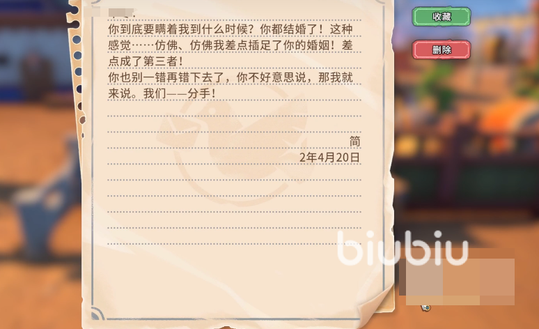 需特别注意:极少数情况下,NPC在心碎状态触发后可能不显示任何情绪异常,但系统仍会立即判定关系终止,并于当日寄出分手信。此类情形虽概率较低,但已有部分玩家实测验证。另外,分手信一旦签收,即代表恋爱关系不可逆地终结,游戏内无回档、撤回或二次挽回机制。