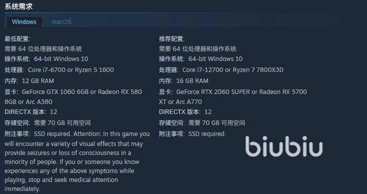 本作构建于高度复杂的夜之城生态之上,动态光影、粒子特效、实时天气与密集NPC交互共同推高了硬件负载。官方推荐配置为第12代Intel Core i7处理器、16GB内存、NVIDIA GeForce RTX 2060 Super显卡,以及不低于70GB的可用存储空间。值得注意的是,安装介质类型对加载效率影响显著——若部署于传统机械硬盘,地图切换与快速旅行过程中的读取等待时间将明显延长,进而诱发感知卡顿;而NVMe固态硬盘可大幅缩短资源调用延迟,是保障流畅体验的基础条件之一。