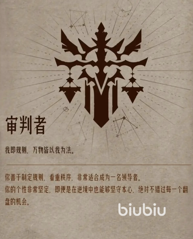 “黑皇帝”序列象征秩序的绝对主导,角色展现出鲜明的战略意识、规则驾驭能力与生存韧性,擅长将既有体系转化为自身优势;但过度功利导向可能使其滑向权术异化,在关键抉择中倾向牺牲伦理换取结果。“审判者”序列则锚定于法理与契约精神,追求程序正义与结果均等,然而机械执行规则易导致人性温度流失,陷入形式主义陷阱。“愚者”序列最具思辨张力——善用悖论、戏谑与非常规逻辑打破僵局,但其解构式思维亦可能导致现实感知弱化,产生认知偏差甚至自我合理化倾向。