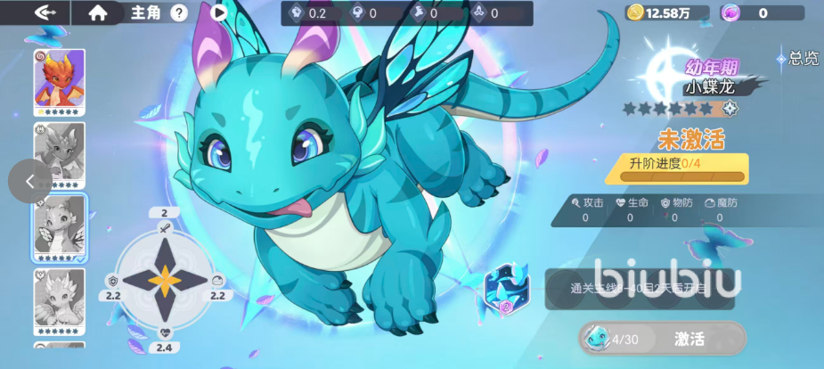 第三位推荐小蝶龙。定位为低成本高性价比前排辅助,普通卡池常驻获取。被动“蝶影闪避”使每次闪避后下一次普攻附加15%最大生命值的护盾,且闪避率随等级提升。无星级门槛限制,1星即可参与开荒,3星突破后解锁“风息庇护”,使全队闪避率提升8%。特别适配新手过渡期,培养资源消耗仅为同阶神话角色的1/3。