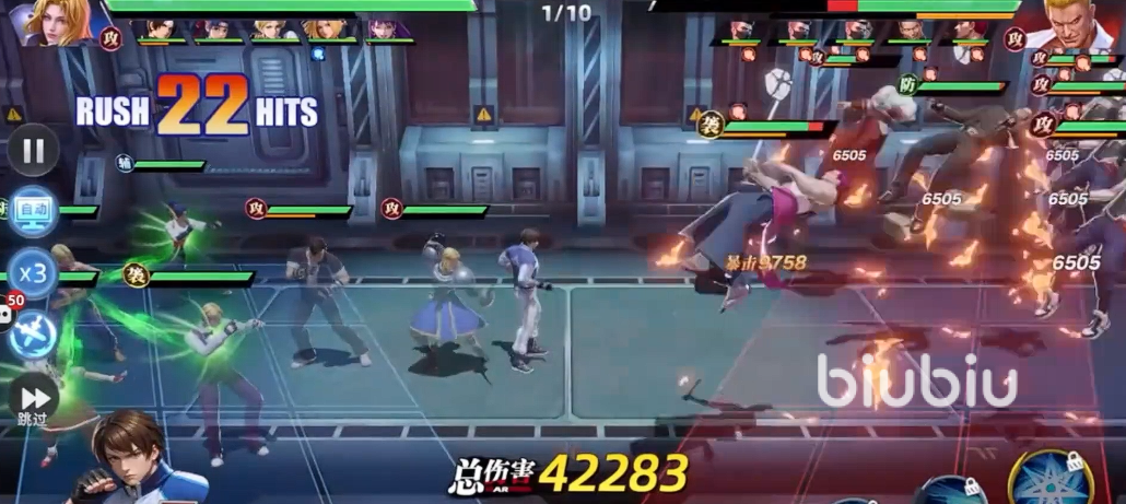 推荐首套高适配性爆发流阵容:坂崎琢磨、草薙京、比利、吉斯、七枷社、克里斯。该组合以草薙京为战术轴心,围绕“燃烧”异常状态构建多层伤害循环。草薙京自身必杀技具备高额单体倍率,并可生成火焰护盾,受击时触发反制效果;其技能命中目标后强制附加1层燃烧,最多叠加至5层。每回合结束时,依据当前燃烧层数结算无视防御的真实伤害,层数越高,真伤总量越显著,形成越战越强的滚雪球机制。