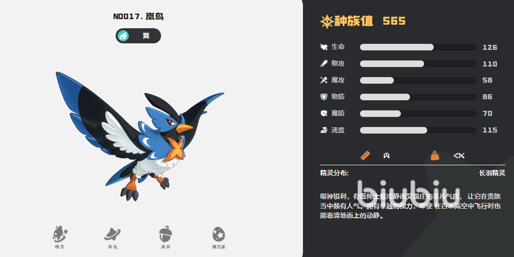 第六位推荐岚鸟,是当前翼属性中空战能力最突出的精灵之一。其特性与技能“顺风”深度绑定,可实现稳定先手,并在压制敌方行动后,使下一次攻击威力提升50%。该机制使其在应对高机动目标、打断关键技能或抢占制空权场景中表现尤为优异。