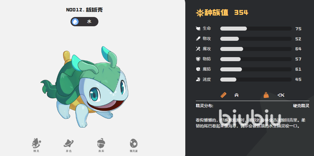 第五位为板板壳,同属水系,但定位截然不同。其形象类似行动沉稳的龟类精灵,所有技能设计均围绕防御展开。特性效果可使自身防御数值永久+2,配合减耗机制,能高频次释放高阶防御技能,不仅大幅延长站场时间,还可为队友提供坚实护盾与反制空间。