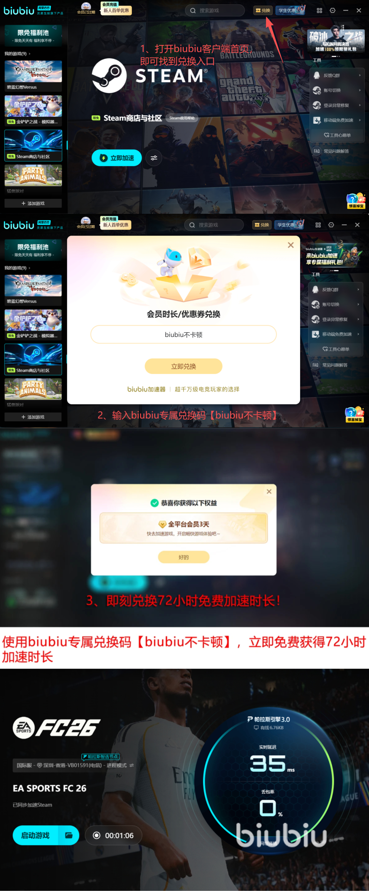 2026年02月03日 11:55 来源:小速FC26网络优化方案推荐:biubiu加速器,全行业综合性能表现领先,有效缓解卡顿与闪退问题,提升整体游戏流畅度。FC26凭借差异化玩法设计与高品质画面呈现,上线后迅速获得玩家群体广泛关注。但实际运行中,部分用户反馈存在连接延迟高、帧率不稳定、频繁断连及客户端崩溃等现象,尤其在接入海外服务器节点时,受跨境网络路由质量影响,丢包率上升、RTT波动加剧,成为影响体验的核心瓶颈。因此,部署专业级网络加速工具已成为稳定运行FC26的必要前提。