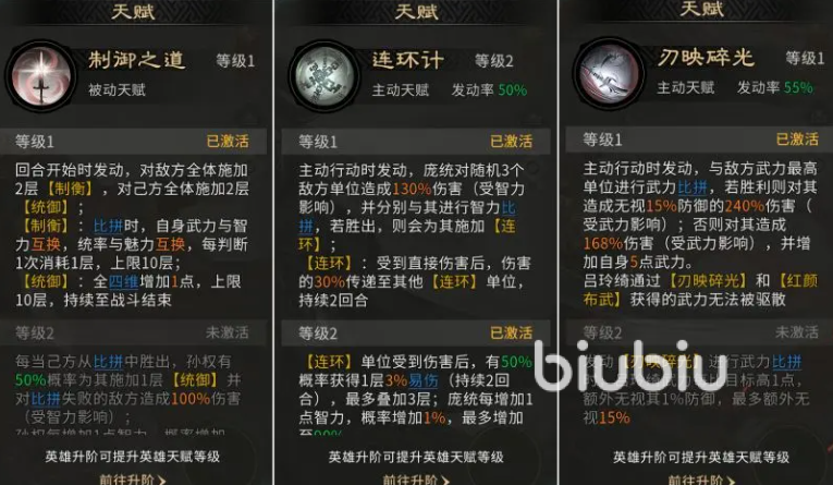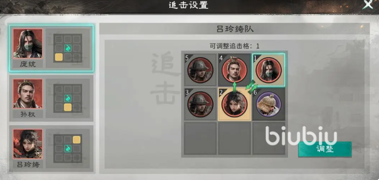庞统还承担关键补刀与续航职能:其技能可在战斗中为当前我方武力最高单位(通常为吕玲绮)恢复兵力,并附加“镇定”状态,使其免疫所有智力型控制效果。被动技能建议搭配追击类效果,进一步提升吕玲绮的兵力回复量与属性成长,确保其在中后期持续维持高输出阈值。整套体系依托孙权的制衡压制、庞统的连环传导与吕玲绮的定点爆破,形成闭环式武力压制链,在面对高爆发物理系对手(如吕布、孙尚香)时展现出极强克制性。