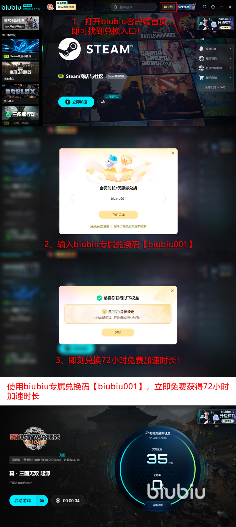 其技术底层搭载帕拉斯3.0智能加速引擎,可动态识别并规避高丢包率链路,提升连接鲁棒性。作为阿里巴巴灵犀互娱旗下产品之一(与九游、交易猫同属该体系),biubiu加速器获得职业电竞团队pero战队官方指定使用认证,印证其在低延迟、高稳定性方面的硬核实力。当前新用户注册即可获赠24小时免费加速时长,叠加通用口令【biubiu001】还可额外解锁3天免费权限,总计最高可达96小时免费体验额度,助力玩家零门槛畅享流畅对战。