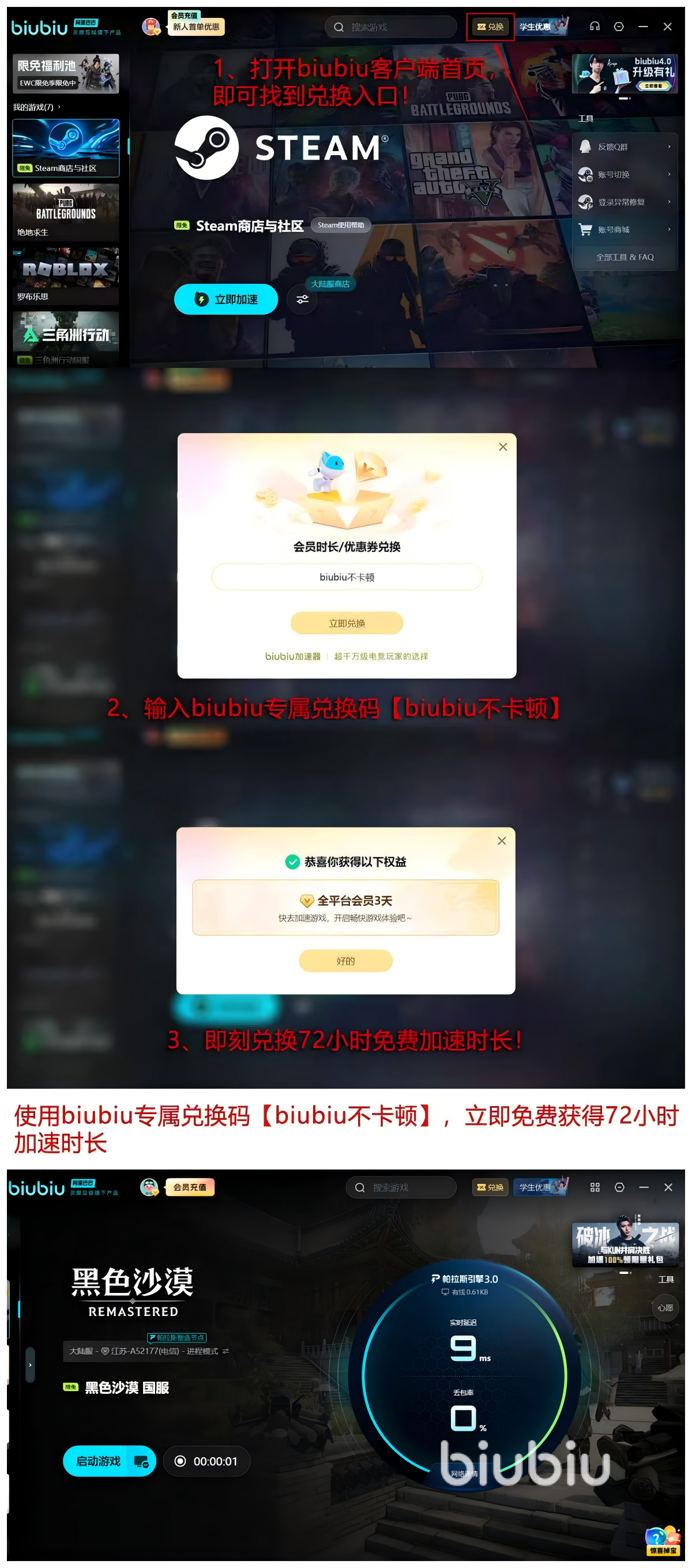 还没体验不相信它的功效的用户,可以试一试【biubiu不卡顿】口令非常有用,兑换之后获取72小时,刚注册直接获取24小时,总计能够获得96小时的加速效果,可以说时间非常的长了,足够各位的运行时间,同时对于各位来说非常的靠谱,保持着用户优先的原则,以体验的实际效果打动各位。