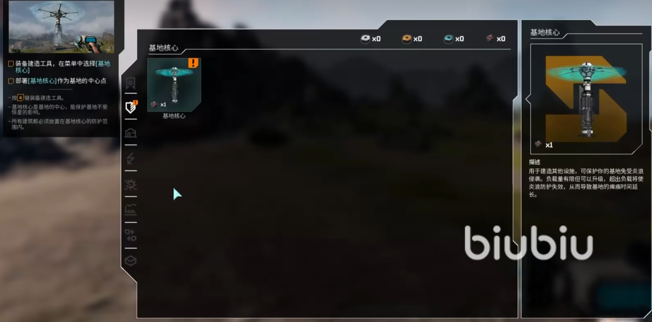 第二个重点任务就是建造基地核心,打开建造工具,菜单里面会有个基地核心,其实就是冷却塔,帮助我们抵御星球的炎浪灾难,免受高温的侵袭。做完之后会要求我们继续采集钛矿以及钨矿,周边就有,各采集到12个任务就完成了,然后需要回到登录舱当中,用基础打印机来制作建筑材料。来到舱内的操作台这里,打开机器就能制作材料。