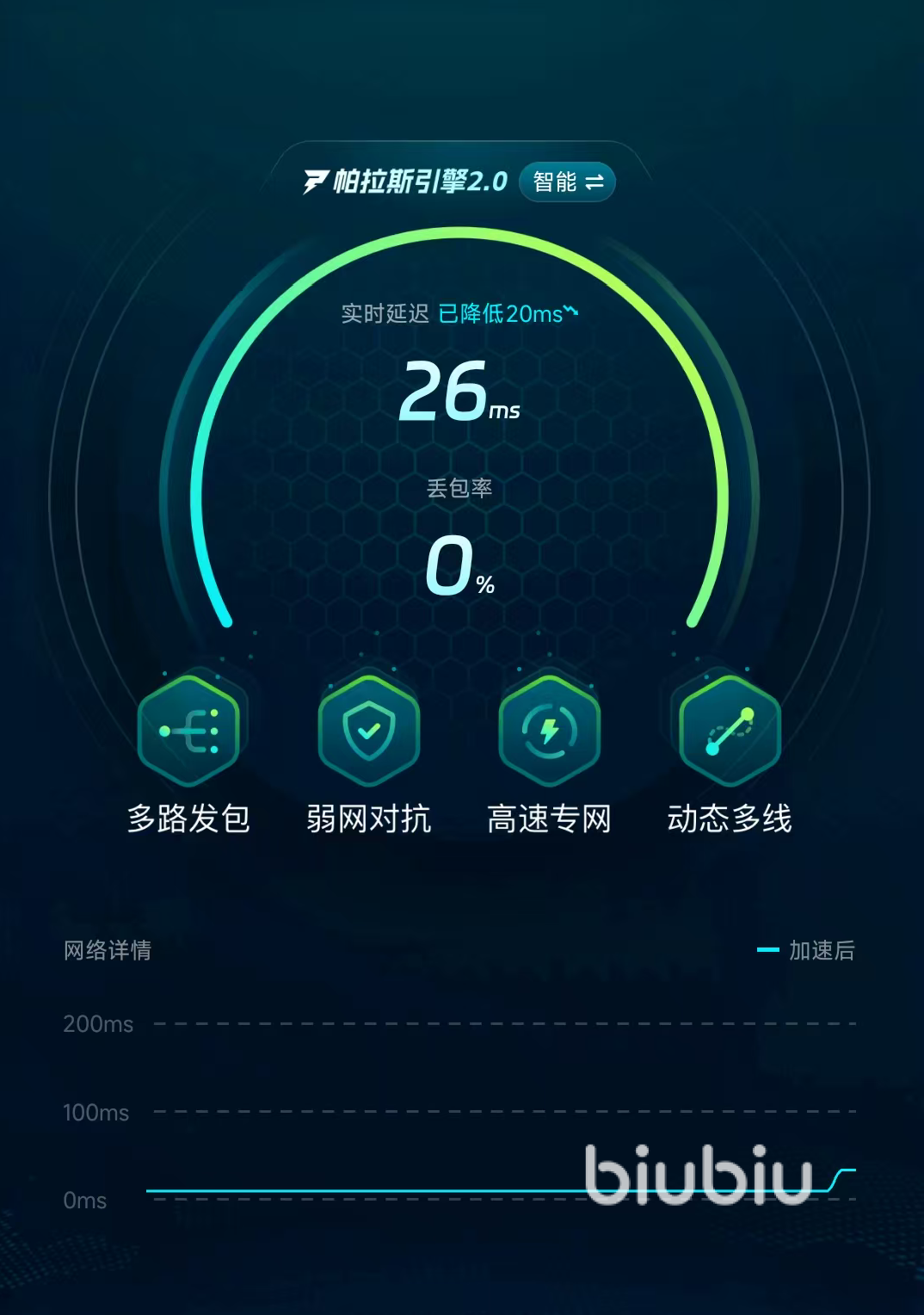 最后一类闪退的情况来源于网络性能不足,部分玩家的手机没有连接上网络,这时候登录就会直接提醒闪退信息,需要玩家们手动连接网络,还有就是网络服务器太差了,延迟会非常地高也容易引发闪退,这类情况就需要使用biubiu进行加速了,现在的biubiu已经成为了综合性能第一的加速器,而且对于手游这块的业务是完全免费的,性价比可谓出色。