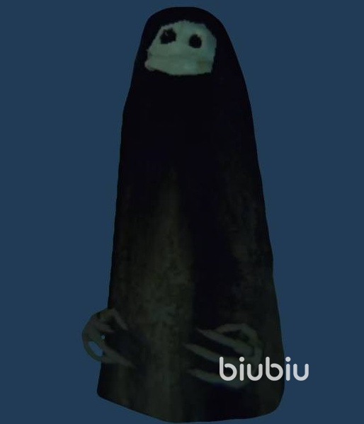 该怪物是冒险时经常遇见的大怪,穿着黑色斗篷,面部带着怪异面具。注意它的移动一般没有声音,有时候体型会缩小,所以躲在桌子或者狭小的地方也不能逃脱追捕。当怪物出现的时候会有提示,有刺耳的婴儿哭闹声,此时就要做好迎战准备了。