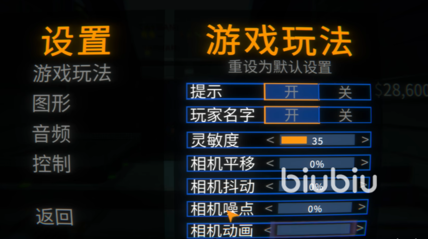 接着相机设置要慎重下,相机平移,抖动,噪点以及动画全部都归0,然后往下拉,动态模糊要是晕3D可以关掉,如果就喜欢这种眩晕感,就开启。后续的选项除了泛光效果打开,镜头失真,胶片颗粒,故障风格等等效果都关掉,像素风格也拉到0。