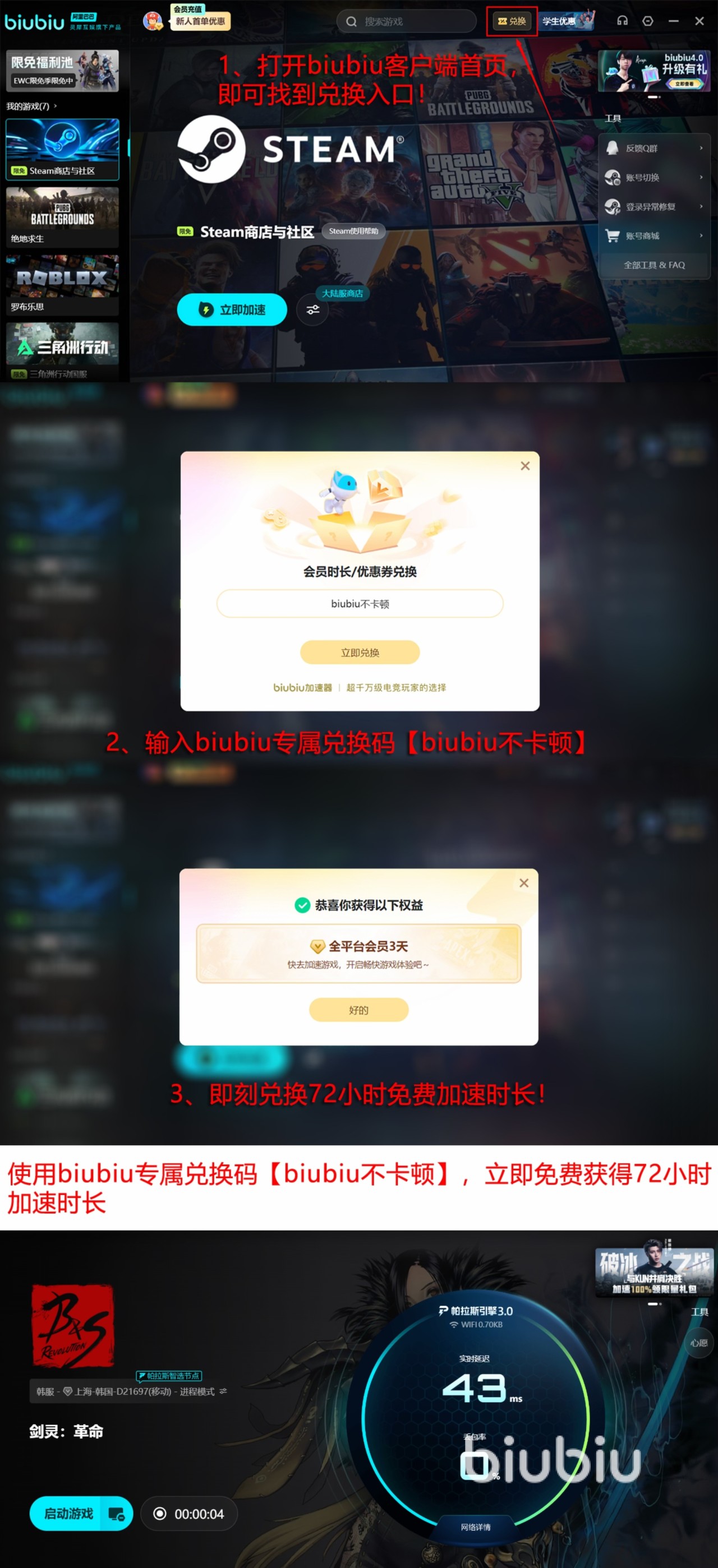 用户可通过文中入口直接获取最新安装包。平台面向新注册用户提供专属权益:新人首次登录即赠24小时全游戏免费加速时长;所有已注册用户均可凭口令【biubiu不卡顿】领取72小时通用加速时长。上述福利覆盖《剑灵:革命》全服节点,助力玩家稳定接入。如需了解当前充值优惠详情,可联系在线客服获取实时政策说明。春节假期临近,提前配置可靠加速工具,有助于保障长线游戏体验的连续性与流畅度。