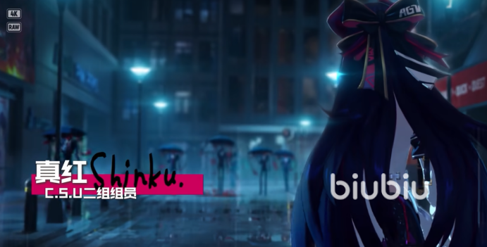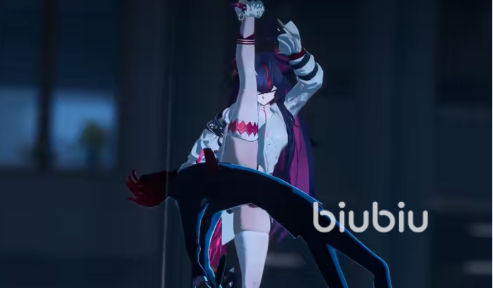 真红的角色设定强调实战导向:上身着简约衬衫,左臂搭载可变形鬼爪异象装置,具备中距离起手与高频率近战压制能力;背部集成机械尾部结构,支持短距位移、技能闪避及追击衔接。整体造型融合硬核机甲元素与轻盈人体动态,凸显其高机动性战斗定位。