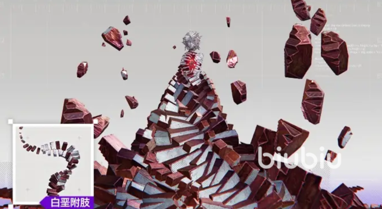 在沉眠阶段,白垩界卫本体处于不可受击状态,但会持续生成白垩附肢。每条附肢具备两种攻击方式:一是垂直下砸造成范围震荡伤害;二是末端崩解为侵蚀碎片,呈扇形抛射,具有追踪特性。必须在限定时间内清空全部附肢,方可触发核心暴露——此时BOSS进入短暂硬直,核心区域开放可被攻击,是第一阶段的主要输出窗口。