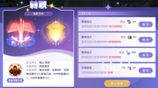 当等级、技能点及任务进度全部达标后,可在任务日志中查看完整的转职指引。系统将提供清晰步骤提示,引导玩家完成对话、副本攻坚等环节。最终抵达转职圣地,根据自身打法偏好或团队配置需求,在圣剑士与守护者之间做出选择。