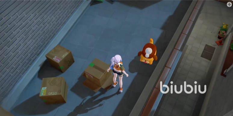 沿脚印路径行进,使用角色技能“奶丁汪”进行垂直跳跃,即可抵达建筑顶部平台。房顶区域分布多个可交互箱体,按提示将指定箱子推至对应坐标后,一处被遮蔽的阳台结构将自动显露。该阳台即为第一张隐藏地图,具备独立环境光照与背景音效,属于非必经但可反复进入的探索节点。