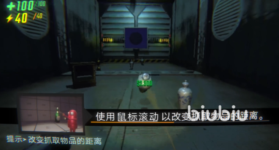 游戏的核心玩法是搜物,因此也有对应的指令可以用,当我们看重某个物品想拿取的时候,偏移视角将屏幕中的准心对准它,按下鼠标左键就发出了抓取指令。注意抓取目标并不局限于可收集的高价值物品,怪物,甚至是攻击道具都能抓的。抓到手里之后滚动鼠标滚轮就能控制距离,将东西放在指定位置。