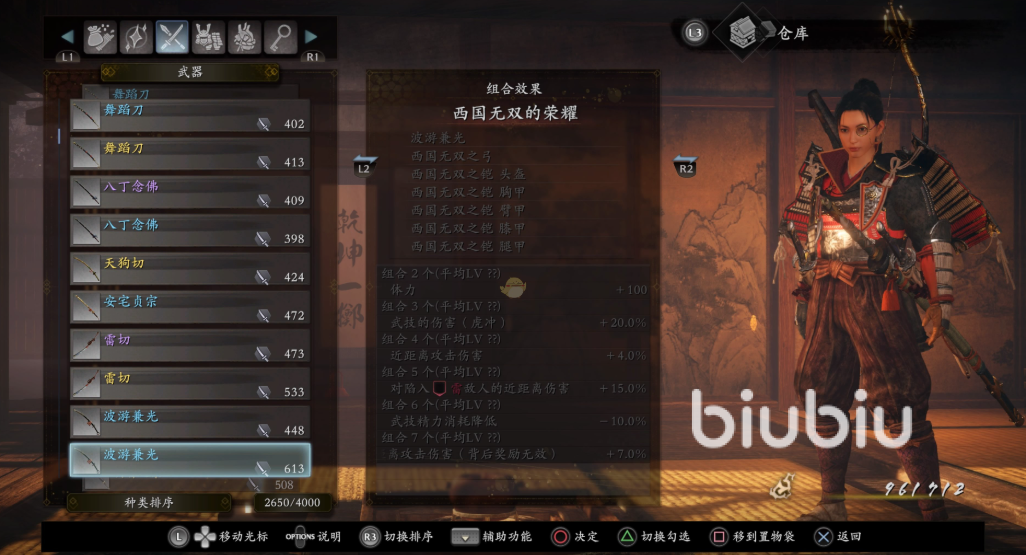少武者中铠(武士专属)2件提供均衡属性(近距离伤害+4%,体力+100);4件成为武士居合流核心武技(居合伤害+20%,收刀增伤+15%),领取冰狱套装后追加。