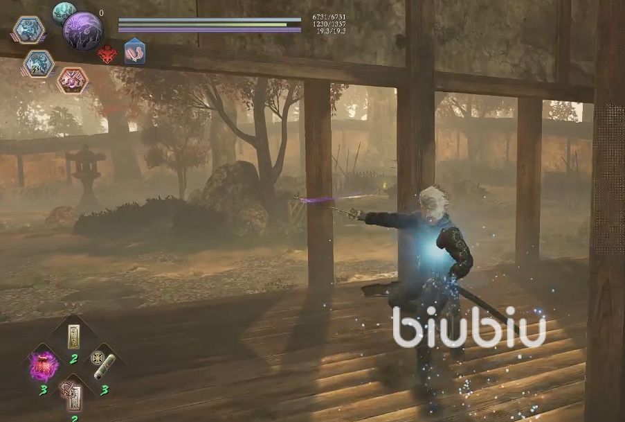然后瞬间释放出武器,这时候就会看见下一个武器释放了紫电,从而加快了攻击速度,而残心的判断阶段还是比较容易的,基本上就是攻击的一瞬间周围就有蓝色的微粒,该阶段切换武器能必定打出紫电,造成额外的伤害,如果对于这个阶段还是不熟悉的话,可以到训练场多多学习。