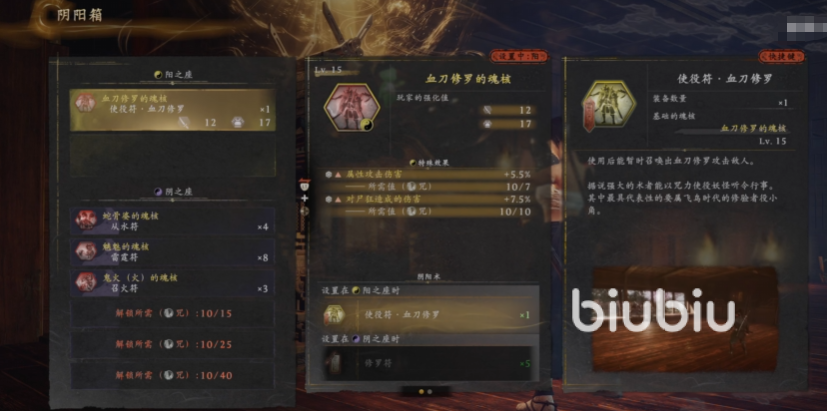 阴阳术是通过阴阳箱生成符咒,在这个过程中,大家需要收集材料魂核,具体的附着效果取决于阴阳箱子所设置的属性。