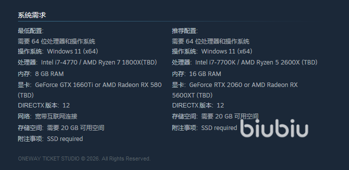 根据游戏官方发布的消息,系统需求分为最低配置和推荐配置这两类。只有满足最低配置后才能运行起来,但需要牺牲画质,而且关闭很多特效。只有达到了推荐配置,才能在游戏中获得较为出色的体验。具体配置小编以截图形式在下面提供给大家,可以直接对照查看。从这些配置可以看出,对于内存和显卡要求其实并不高,相信目前主流机型都能做到覆盖。只是需要腾出一些储存空间用于安装。