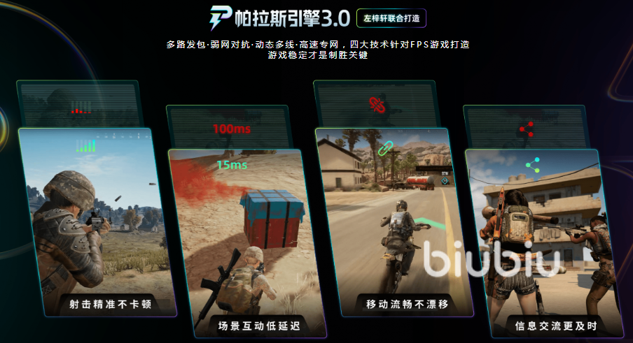 biubiu加速器核心的竞争力,那就在于帕拉斯3.0引擎。可以有效适应不同的网络环境,通过动态优化数据的传输路径,就算在高峰时间阶段或者是落网的阶段,照样也可以规避延迟以及丢包的问题。成为PUBG玩家主要的选择,另外背后还有阿里巴巴灵犀互娱大厂技术。所以这款加速器在兼容性以及节点覆盖等方面都会不断的突破,可以支持手游端,还有PC端等多个游戏的加速。