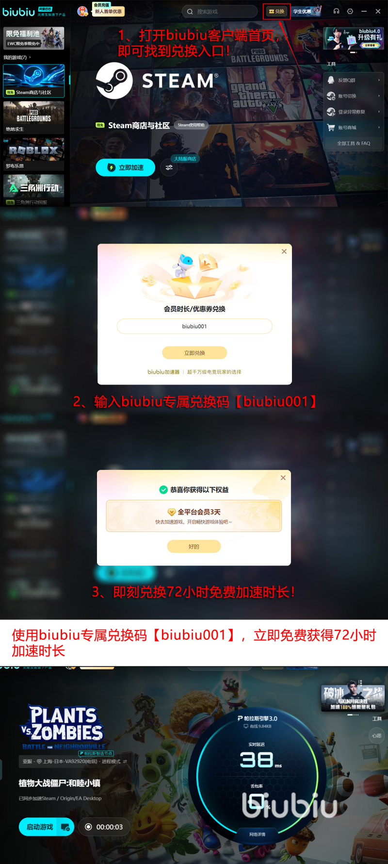 biubiu加速器这款加速器从行业口碑,还有专业背书方面都能发现优势。这就是阿里巴巴灵犀互娱大厂技术加持,还拥有帕拉斯3.0引擎。网络优化算法早已得到千万玩家的验证,稳定性会超过于同类产品。更是得到了PERO战队的官方合作工具,职业赛场的严格考验,就已经证明加速效果的硬核实力。现在下载加速器,新用户就能累积长达96小时免费加速时长。在初次注册下载后,有一个24小时的免费福利。还可以通过兑换码【biubiu001】获取长达3天的加速时长。下载的方法也很简单,只需通过以上链接,就能帮助玩家告别闪退的烦恼。
