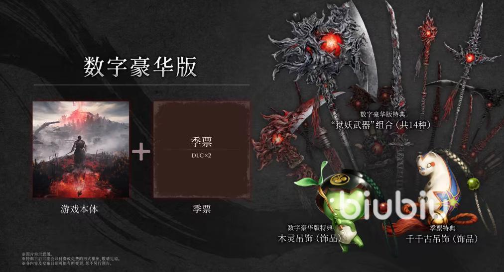 先来了解下标准版与豪华版的区别,标准版就是一个数字版游戏本体,国区售价348元。豪华版则是在标准版的基础上增添了季票、狱妖武器组合(豪华版内容,合计14种)、木灵吊饰(豪华版内容)、千千古吊饰(季票内容),售价546元。