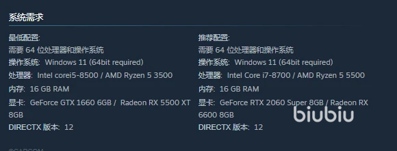 结合生化危机系列游戏之前的问题,以及这款游戏在之前展现出来的种种资料,我们不难得出结论。这款游戏无论是在沉浸式探索的过程中,还是在战斗过程中都必须要有流畅运行环境,才可以感受到游戏最有魅力的部分。一旦出现卡顿,就有可能丧失大量体验感,而这款游戏在正式运行时大概率会出现卡顿闪退这样的问题,解决方式也和之前很多游戏相似。首先是看一下自身的硬件是否达到了流畅运行的标准,下图展现的就是配置需求,如果只是勉强运行,那么进入游戏后一定要将画质调低,将各种特效尽量关闭,这样来维持流畅度。