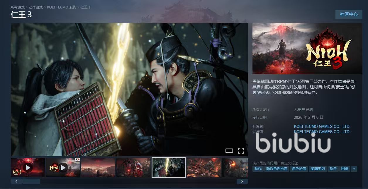 对于游戏的名字,可能要分成中国区steam和外区steam两个,在国区steam中,大家可以直接使用仁王3来搜游戏,并且是完全可以搜到的,这也是因为同属于汉语文字圈的日本游戏,起中文名字时很习惯的沿用汉字名字,国区玩家也非常容易认识。如果在外区steam上搜索,则需要用其英文名字“Nioh3”了,这是游戏的英文名字,目前也只能直接搜到的。另外,有关游戏的首发平台,无论是已经在1月29日首发的demo版本,还是在2026年2月6日正式首发时选择的平台,游戏方目前只选择两个首发平台ps5和steam两个平台,这已经是确定的了。