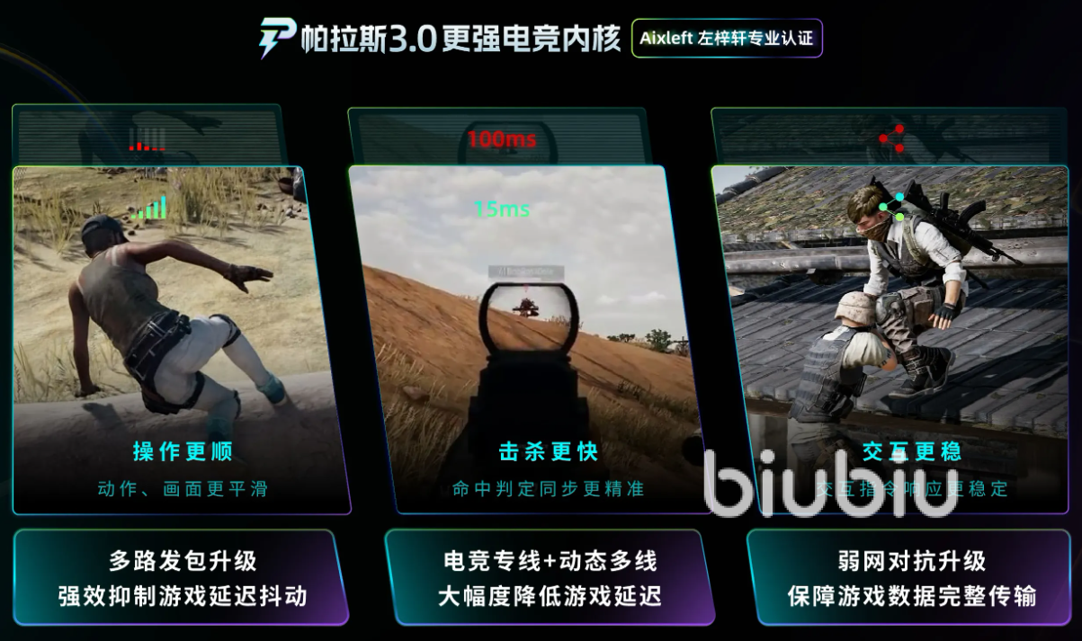 而且biubiu背靠阿里巴巴灵犀互娱大厂,技术实力很有保障,它也是得到了绝地求生冠军选手左梓轩的亲历认证,近期更是升级到了帕拉斯3.0引擎版本,运行速度会更加稳定,里面有上千款的游戏,现在还是限时免费加速期间,大家不需要开通会员都是可以一键体验的,多发线路也能让玩家们更顺畅的连接,拥有电竞级别的网络加持,游戏也会更加顺利。