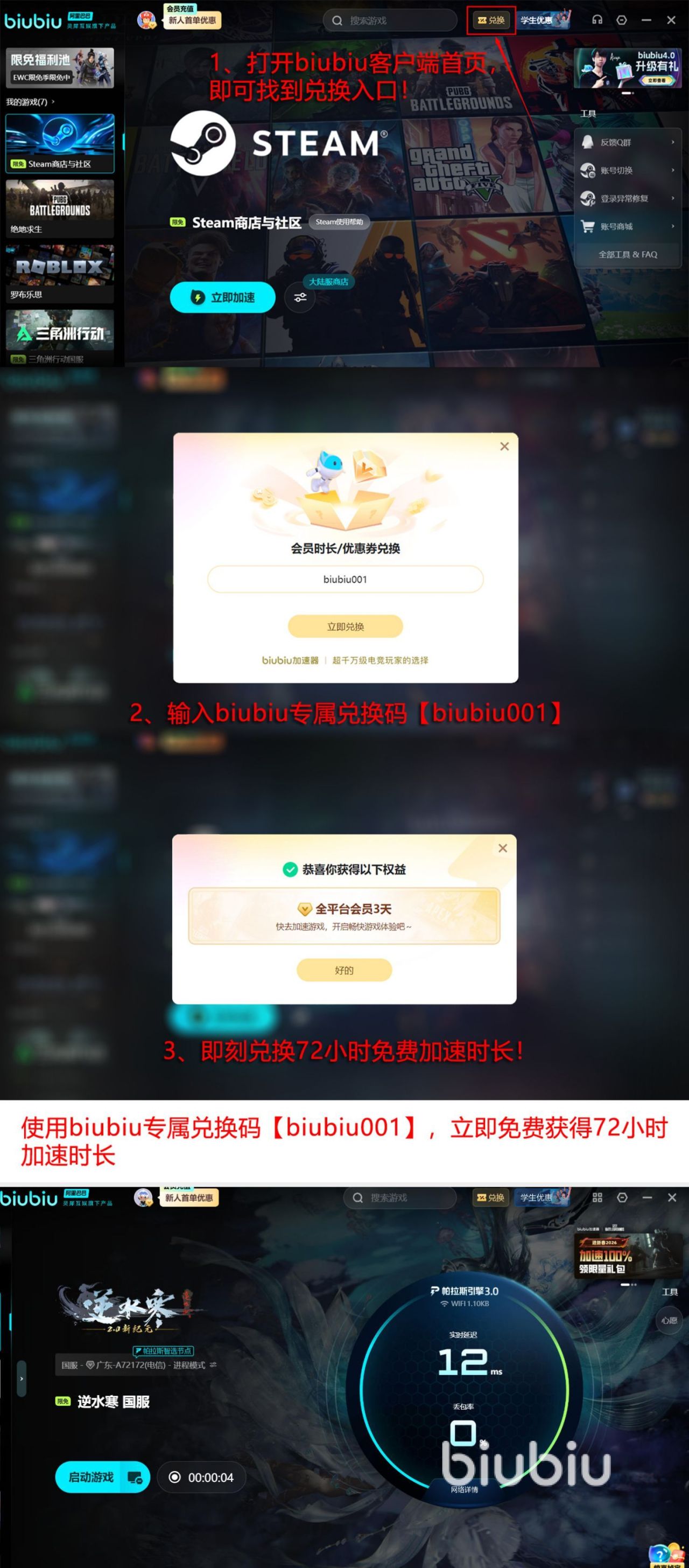 其中就包括pero战队在训练时就指定了biubiu加速器,都是因为它拥有着出色的实力,其中就包括自研的帕拉斯3.0引擎,而且还有阿里巴巴灵犀互娱作为支撑。如果大家也想要免费体验的话,新老玩家利用输入口令【biubiu001】就可以免费获得三天加速时长,新用户通过注册以后就可以获得24小时的加速时长,如果能够利用这两种方法的话,如今的福利最多可以免费加速96小时,0成本的完成游戏加速。