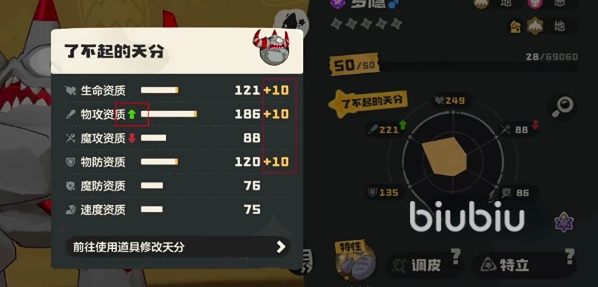 如图所示,精灵图鉴界面明确标注种族值与个体值数据。即便同属一个种类,不同个体间存在明显差异,例如“资质平平”“了不起的天分”等评级,直观反映其成长上限。因此,在野外批量捕捉时,建议优先筛选种族值高、个体值评级优的个体作为主力培养目标。此外,针对基础属性成长空间较大的精灵,可通过贤者碎晶、首领碎片等资源进行炼制合成,激发更高阶血脉潜能,从而提升整体洛克系数表现。