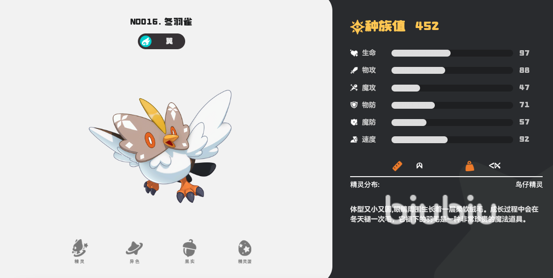 冬羽雀是玩家进入《洛克王国世界》后最早接触的翼系精灵之一,也是初始御三家体系中的关键成员。它不仅拥有四季外观动态变化的彩蛋机制(随春、夏、秋、冬实时切换形象),更在基础成长模型上体现出均衡而扎实的数值结构:生命值、物攻与速度三项成长率均处于同阶翼系精灵前列。这一设定使其在游戏前期即可胜任多场景作战需求,无需依赖复杂养成即可稳定输出与灵活走位。
