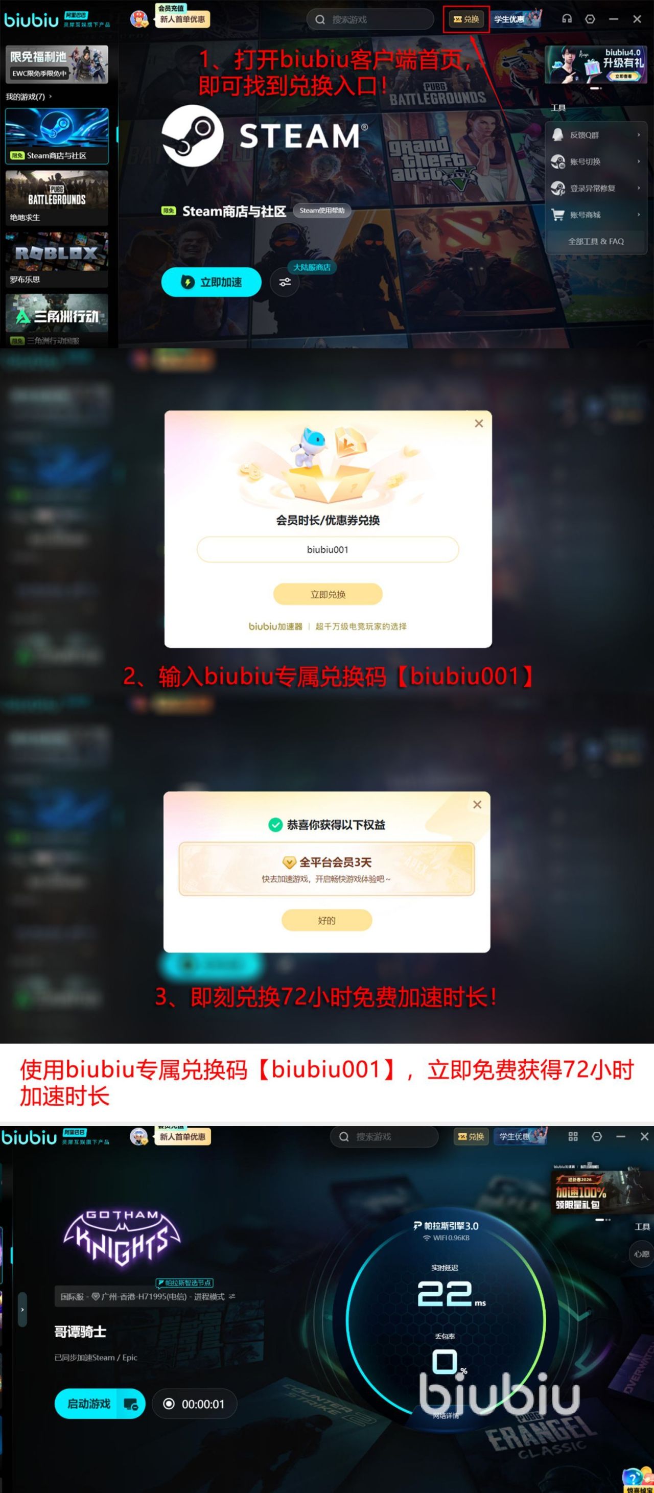 介绍的此款加速器,早就已经获得了PUBG冠军选手小叮当的推荐,也是pero战队指定训练时的加速器,备受专业人士好评,都是因为它背靠阿里巴巴灵犀互娱这样的大厂商,还有专业顶尖团队自研的帕拉斯3.0引擎,所以能让大家在玩各种游戏的时候享受流畅的网络,并不会受到闪退的影响。如今新老用户通过输入口令【biubiu001】就能够免费加速三天,新用户只要注册登录就可以获得24小时加速时长,通过两种方式叠加在一起的话,相当于新用户可以免费加速96小时。