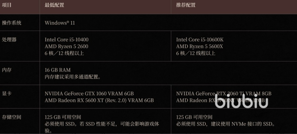 根据小编的了解,这款游戏对于玩家的配置方面其实是有存在一定要求的,比如操作系统就要是Windows11,处理器则是要is-10400以上,且显卡要准备GTX1060以上,如此也是为了能确保玩家在游戏内的画面可以顺利打开。