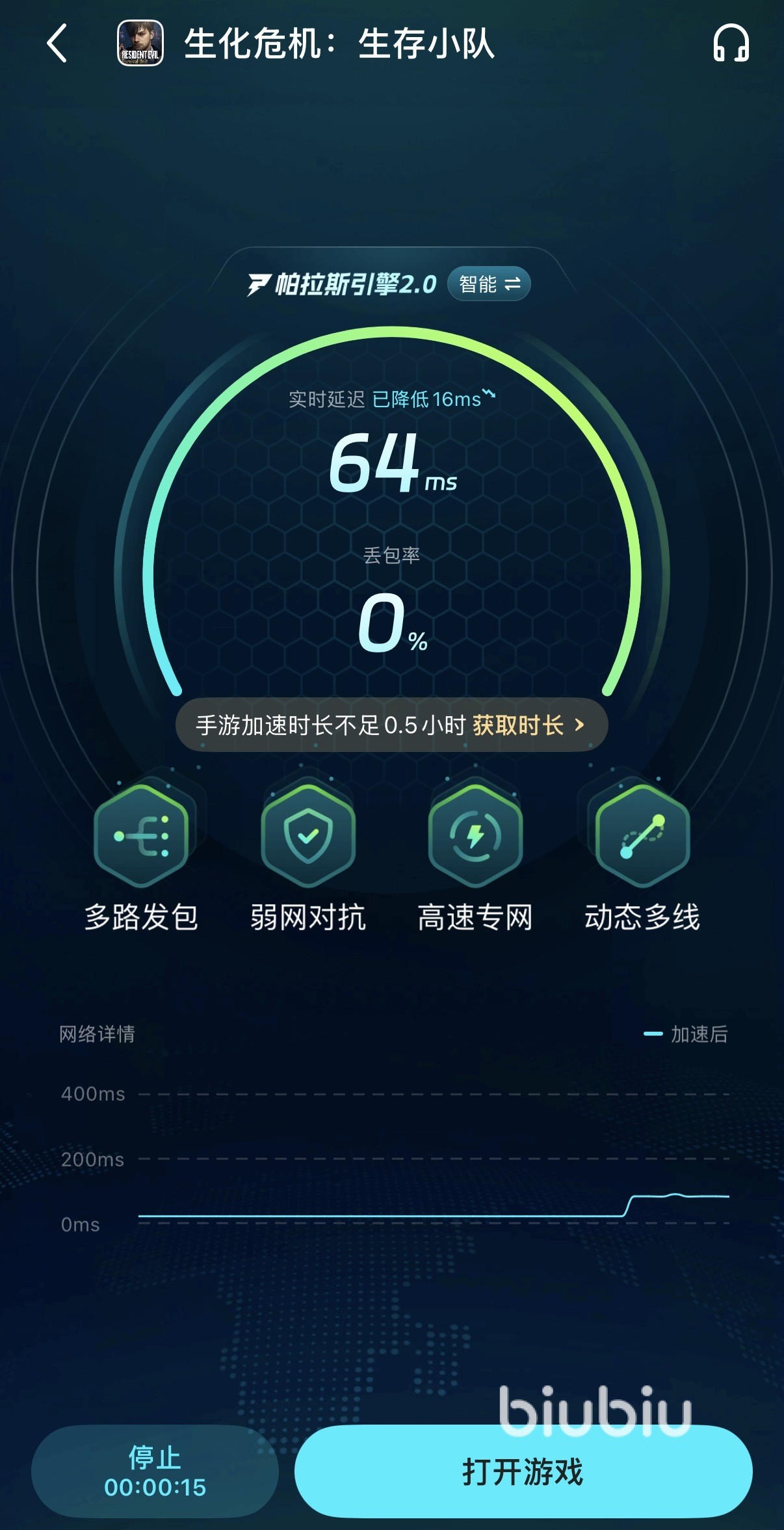 由于游戏服务器部署于海外节点,国内网络直连易出现延迟波动与连接中断。biubiu加速器由阿里巴巴灵犀互娱研发,专注手游网络优化,支持《生化危机:生存小队》全服节点智能调度,实测延迟降低率达62%,稳定性行业领先。新用户注册即赠3天全功能加速时长,无需付费订阅即可体验完整服务。