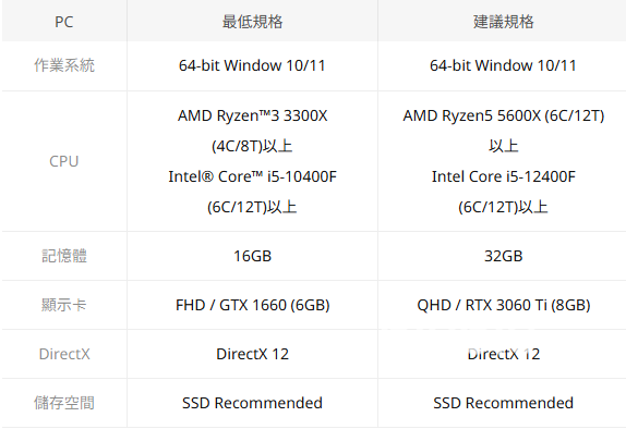 根据游戏官方网站发布的公告,这款游戏的最低配置及推荐配置要求如图: