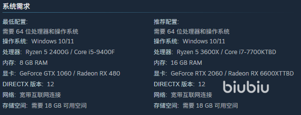 如果大家想推开这扇神秘之门,那么满足最低配置就可以了。但是如果大家想亲眼目睹虚幻引擎5渲染下的细致光影,让恐惧的氛围毫无折扣的包围自己,那么请瞄准推荐配置。