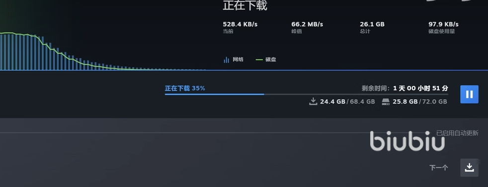 凡是在平台登录的游戏,我们都要借助平台网络通道才能完成数据下载任务。这就很看带宽以及传输效率如何了,有时候steam网络就是不好,还容易断连,下载速度只有几百kb每秒,那就是下载的很慢。提升办法就是拓宽网络通道,提高效率,这些在biubiu的帮助下都能做到。