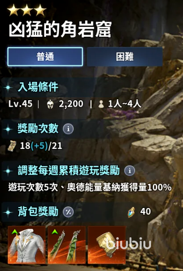 该任务需要等级达到45,装备2200以上才能进入,容纳队伍人数是1-4人,找好友去打更容易通过。奖励很丰富,有概率得到古代精灵披风以及胸甲这些道具,还有低保套装能拿。