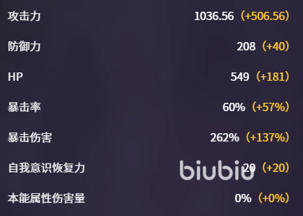 在基础属性方面,赛雷妮尔60级满配时基础攻击力为1036.56,经各项加成后可稳定突破1500;防御力为208,配合小幅生存向增益即可满足常规副本对坦度的基本需求,无需刻意堆叠防御类装备。输出核心指标上,暴击率可达60%,其中57%来源于属性加成;暴击伤害高达262%。该数值组合确保普攻与技能均具备极高暴击触发频率与单次伤害量,使其天然适配主C定位。此外,20点自我意识加成可显著提升角色专属机制的响应效率与覆盖率。