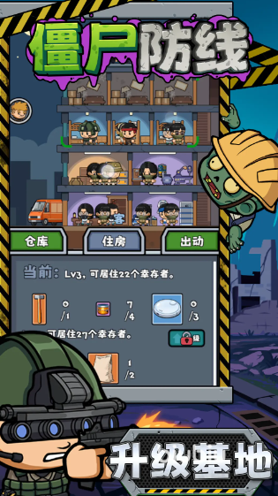 新手友好度高,操作逻辑清晰,塔防部分采用直观拖拽布防+自动攻击模式,类似经典策略体验但节奏更紧凑。进阶内容包括基地建设系统——升级后可扩大幸存者容纳上限、解锁高级存储格与研发台;以及无尽挑战模式——每层敌波强度递增,推动玩家持续优化阵容搭配与资源分配策略,在反复试错中积累实战经验。