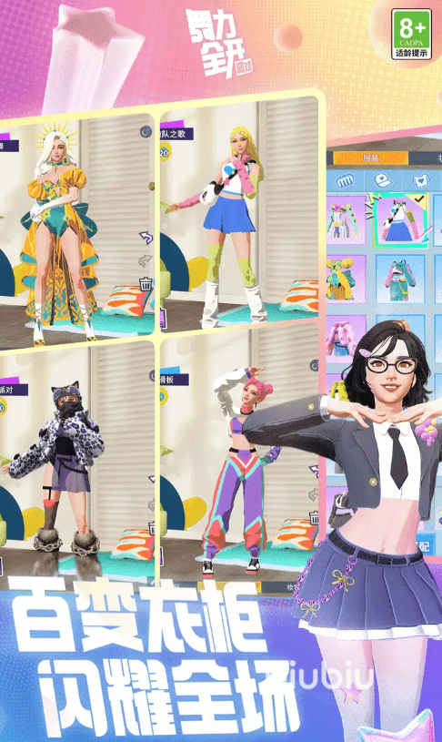 除功能性加成外,服装系统亦承载个性化表达价值。游戏中涵盖数十种设计方向,包括但不限于萌系可爱、东方传统、现代简约、赛博朋克等风格。所有服饰均支持自由混搭,玩家可通过细节配件(如发饰、手套、腰链)强化整体协调性。角色外观不仅是视觉呈现,更是个人审美倾向与舞蹈态度的延伸体现。