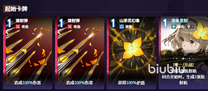 开局阶段,「速射弹」是维诺尼卡最基础也最关键的起手卡牌。虽然基础伤害为100%,但其隐藏机制——20%概率触发「投射机」生成效果,为后续资源循环奠定基础。配合「山茶花幻象」这张防御向技能卡,可立即获得等同于自身最大生命值100%的护盾,在近身作战或遭遇集火时显著提升容错率。二者协同使用,能有效缓解前期资源压力,实现平稳过渡。