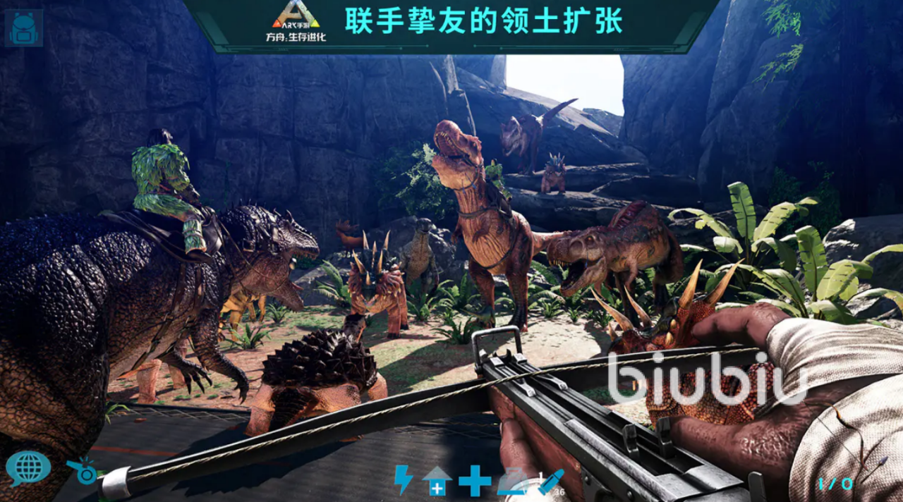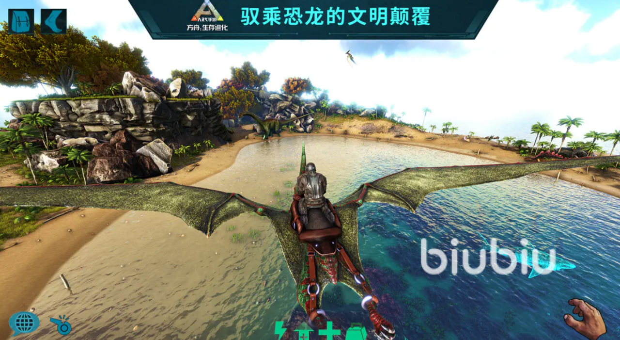 超过百种可交互生物是本作标志性设计亮点。涵盖迅猛龙、三角龙、剑龙至雷龙、霸王龙等经典史前物种,不仅具备差异化AI行为逻辑,更支持深度驯化系统。成功驯服后,玩家可骑乘翼龙翱翔天际、驾驭甲龙横跨平原、指挥泰坦巨兽攻坚要塞,实现陆空协同的立体化探索与战斗体验。