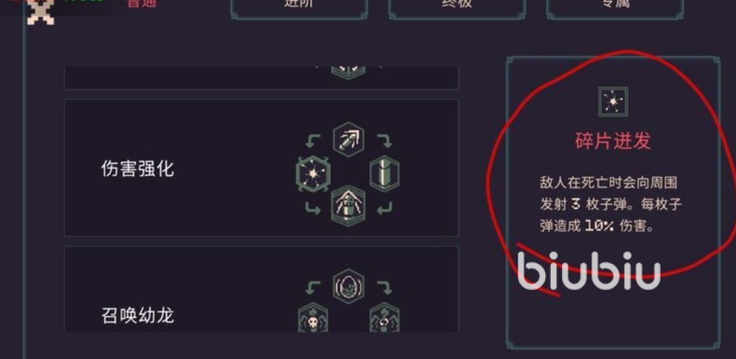 武器方面,蝙蝠枪为最优解。其自带自动索敌特性,无需手动瞄准,且每次命中可触发两次弹跳效果,能充分联动雷电、点燃、冰冻等所有元素特效,实现持续范围压制。天赋加点建议分阶段推进:前期优先解锁“怒眸”,保障基础输出稳定性;中期再逐步激活燃烧、冰冻等元素强化节点;待掌握稳定元素反应后,再投入“伤害强化”与“碎片”类天赋——后者可在敌人死亡瞬间自动触发子弹发射,进一步强化清怪效率。