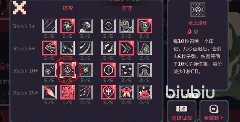 符文配置需围绕“被动触发”逻辑展开:保留唯一与枪械机制强关联的“枪之烙印”,其余槽位全部用于强化元素类效果,如点燃、冰冻等。该烙印技能每10秒自动生成一枚印记,延迟后将一次性发射6发子弹;其等级提升可缩短冷却时间,是维持全程无手动射击的关键枢纽。